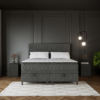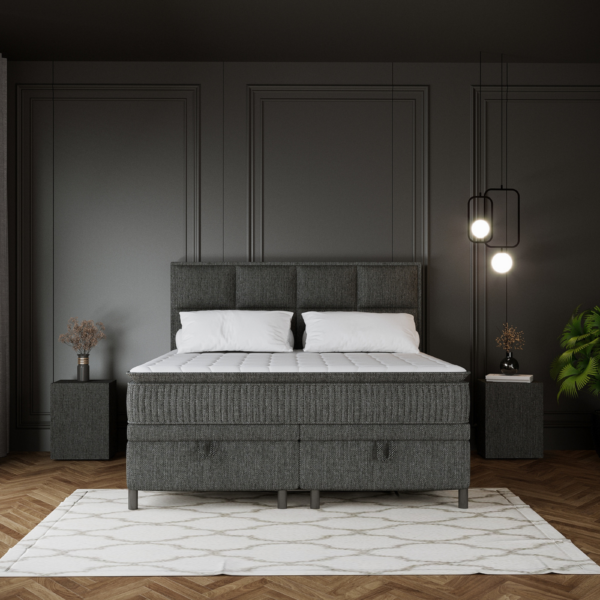 Stap over op een slaapervaring die zowel esthetisch aantrekkelijk als functioneel indrukwekkend is met onze nieuwste creatie, de Boxspring Space. Dit bed is niet alleen een blikvanger dankzij zijn moderne en strakke ontwerp, maar biedt ook een slimme oplossingsgerichte benadering met zijn uitgebreide opbergruimte. In een diep antraciet kleurenschema, mengt het zich naadloos met diverse interieurstijlen, waardoor je slaapkamer een upgrade krijgt in zowel stijl als comfort.
